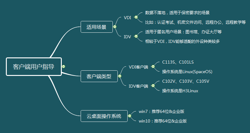 首先,H3C Workspace 客户端分为VDI 客户端和IDV 客户端。其中VDI 客户端分为普通PC(利旧PC)和瘦终端,二者不区分使用场合,只是普通PC依然可以使用其本地系统,需要点击云桌面客户端才能进入登陆页面,因此瘦终端版比普通版多了终端关机、重启以及本机设置的功能。IDV 客户端是运行在IDV终端上的。