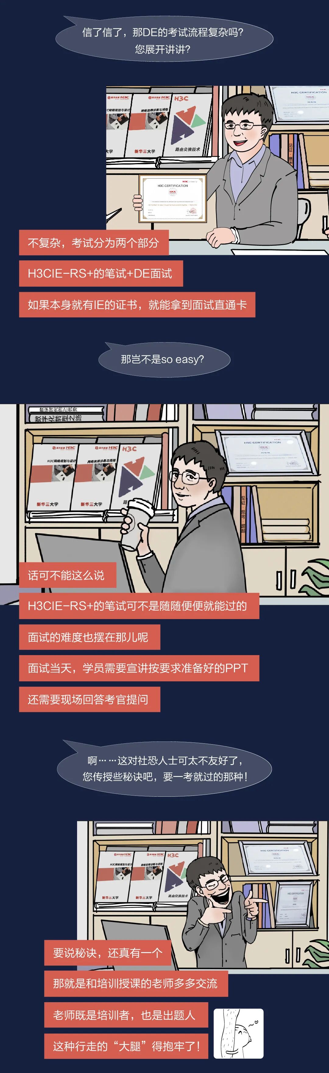留言说出你对H3C认证的相关问题,东亮老师将随机抽取三位同学的问题亲自解答,被抽中的同学同时将获得H3CU定制超舒爽polo衫一件。