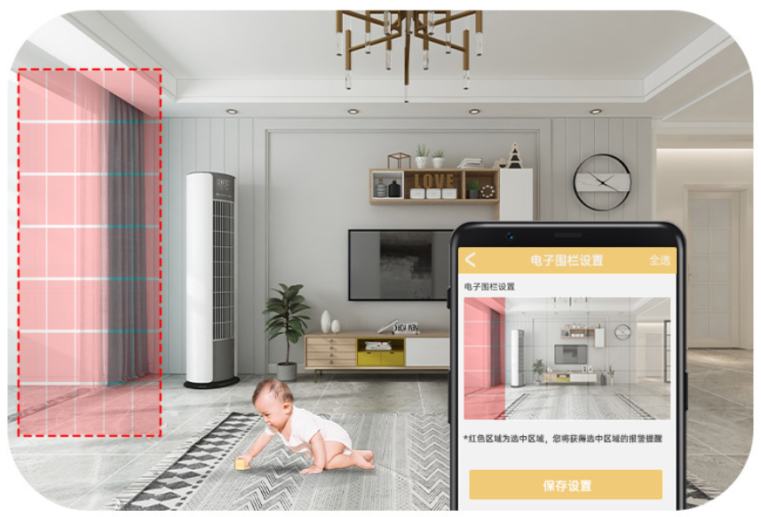 更值得一提的是,当家长因特殊情况不在孩子身边时,其内置的AI声光警戒系统与电子围栏技术,能在检测到异常入侵或孩子靠近危险区域时,立即触发警报并通知家长,有效预防潜在风险,让您的担忧无处遁形。