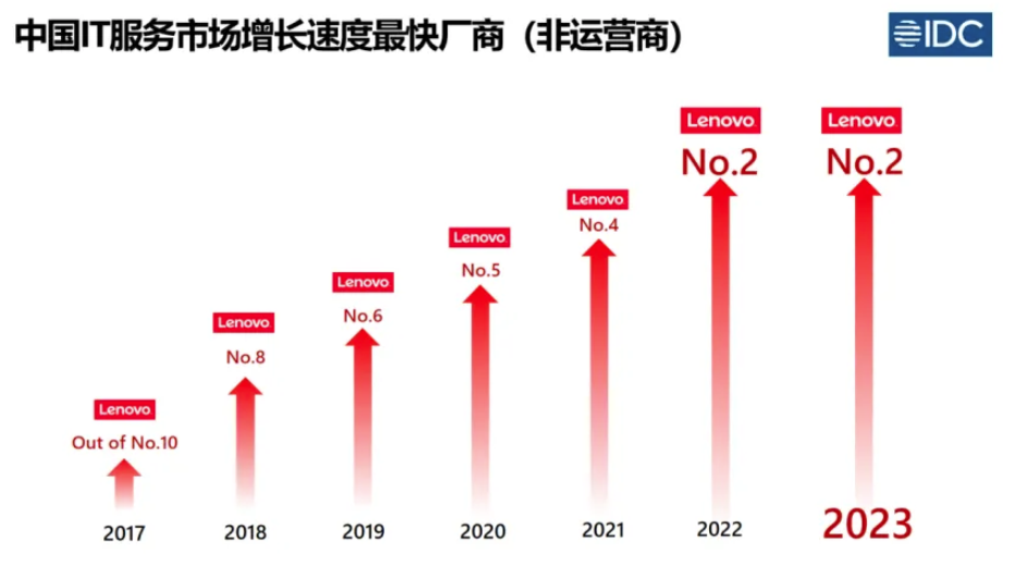 · IDC发布《中国IT服务市场(2023下半年)跟踪报告》,联想方案服务蝉联非运营商IT服务市场第二,连续10年终端运维管理服务第一。