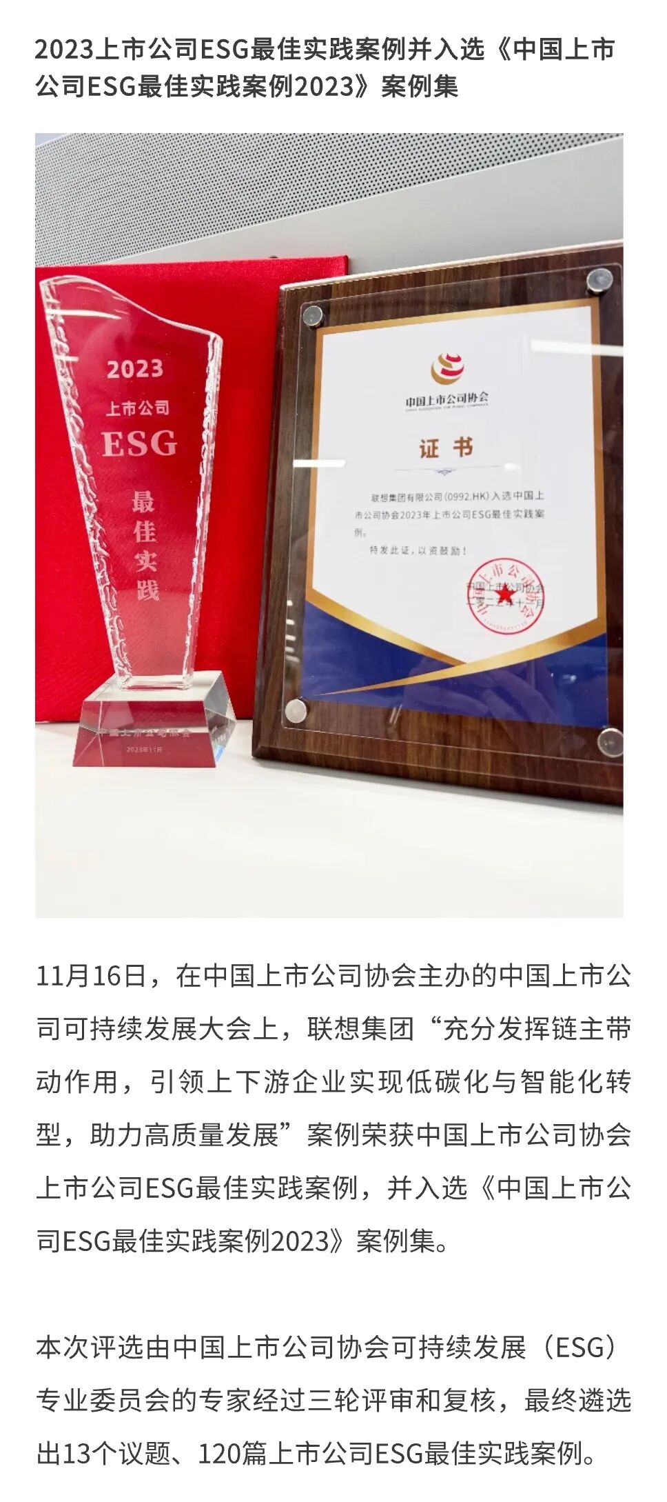 躬行实践,经过多年的深耕与努力,联想ESG表现卓越,并在近期连续获得九项荣誉!