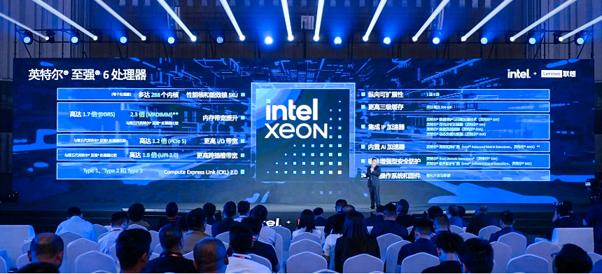 其中,联想此次重磅推出的全新算力服务器家族,采用最新一代的英特尔®至强®6处理器,与上一代相比,配备更多内核和更快内存,每个内核均内置Al加速功能,性能更上一层楼,可有效应对从边缘到数据中心再到云端的严苛AI挑战。