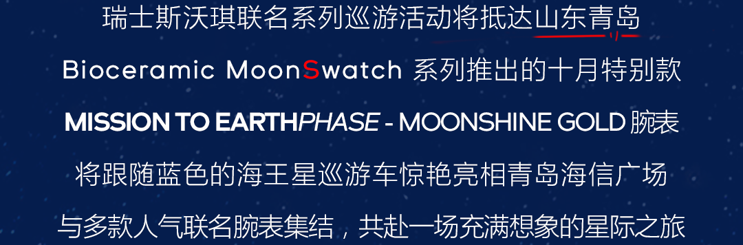 摘要:2025.10.16-19📍青岛海信广场 1F 二期连廊限时开启。十月特别款MOONSHINE GOLD联名腕表,将随蓝色海王星巡游车闪耀亮相青岛!