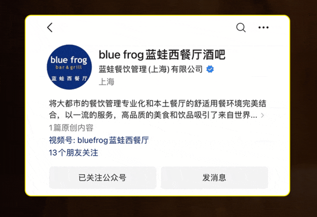 文章内容来源于公众号:blue frog蓝蛙西餐厅酒吧,点此可查看原文,内容版权归相关企业所有,本网站仅供交流学习。若涉及版权问题或存在侵权情况,请及时与我们联系,我们将第一时间进行删除处理。