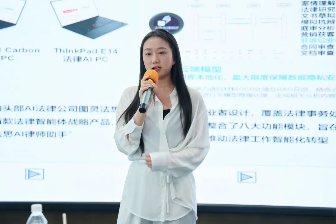 联想SMB PC产品经营管理主管徐婧以“当法律遇上AI”为主题,深入解读了AI与法律行业的结合趋势,并详细介绍了联想ThinkPad针对这一趋势所推出的全栈AI产品、解决方案及服务。