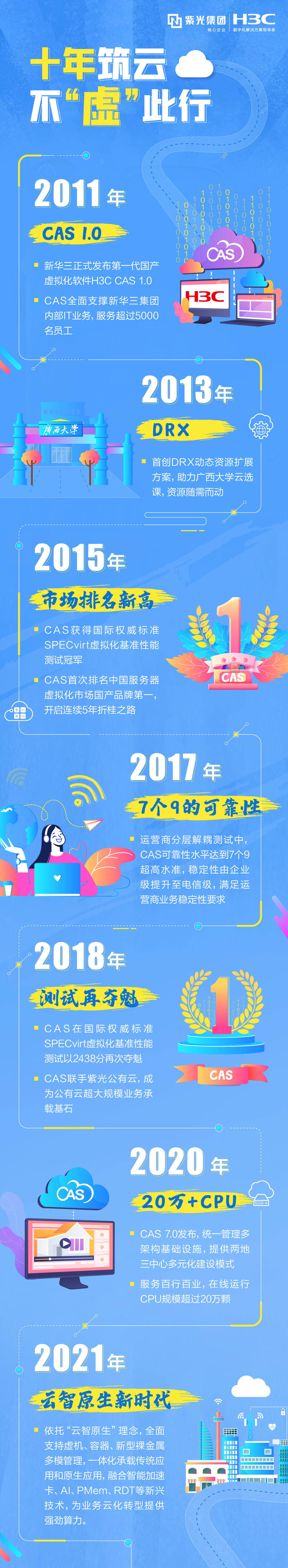 在技术变革、市场佳绩的背后,10年之间,H3C CAS始终坚守最初的信念,以“不变”应万变,让用户可以将上云的重任放心托付于H3C CAS: