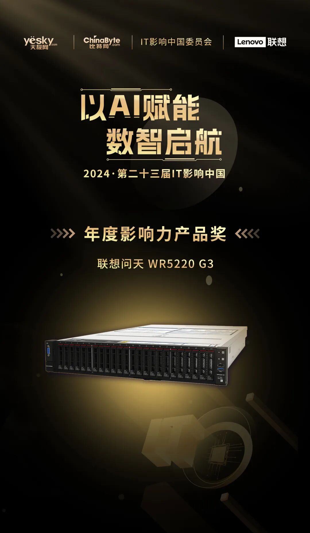 联想问天 WR5220 G5荣获IT168颁发的“2024年度技术卓越奖”、至顶科技颁发的“创新技术品牌用户选择奖”。