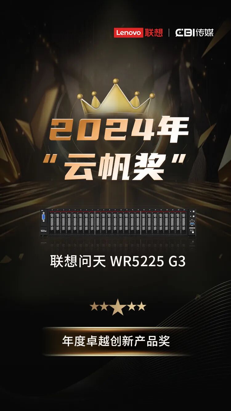 联想问天 WR5225 G3服务器荣获CBI传媒颁发的“2024年度卓越创新产品奖”。