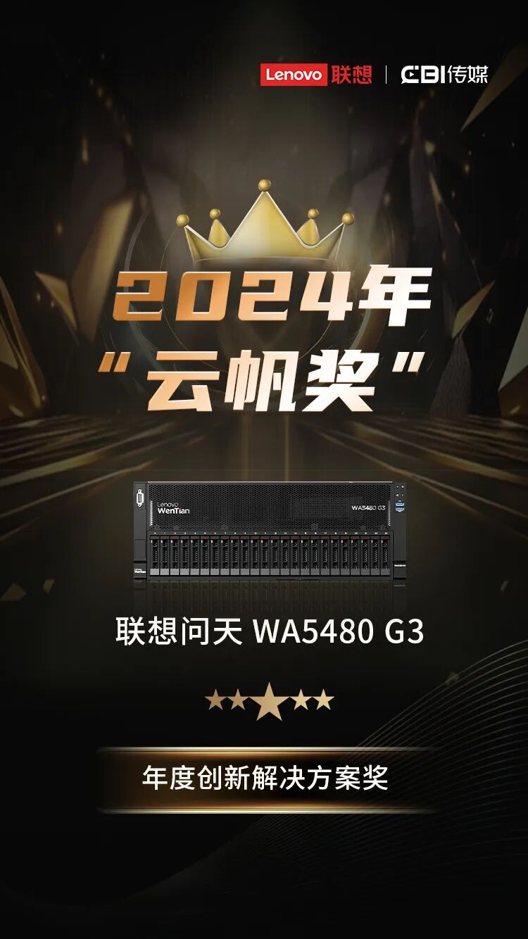 联想问天 WA5480 G3服务器荣获CBI传媒颁发的“2024年度卓越创新AI解决方案奖”、51CTO颁发的“2024年度IT行业大模型创新产品奖”和至顶科技颁发的“创新产业引领奖”。