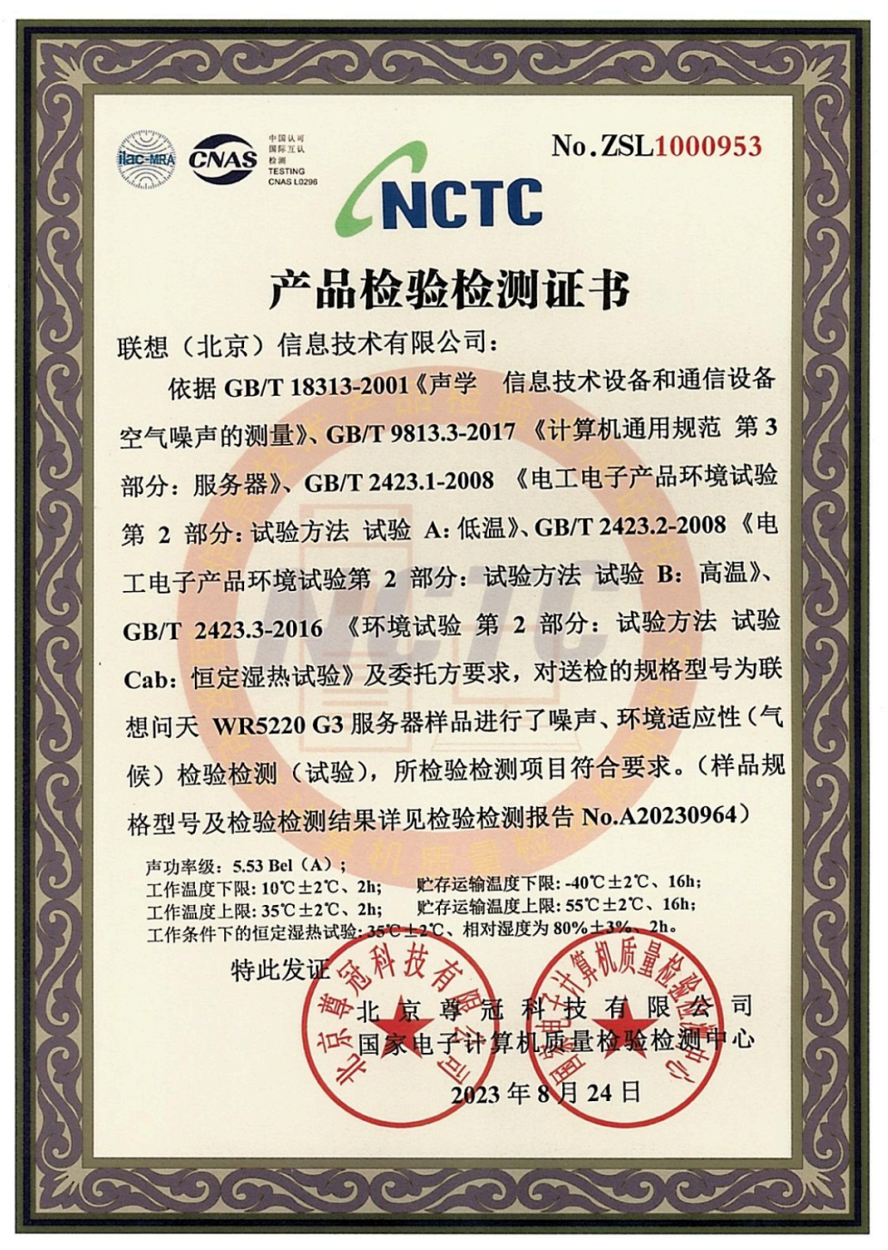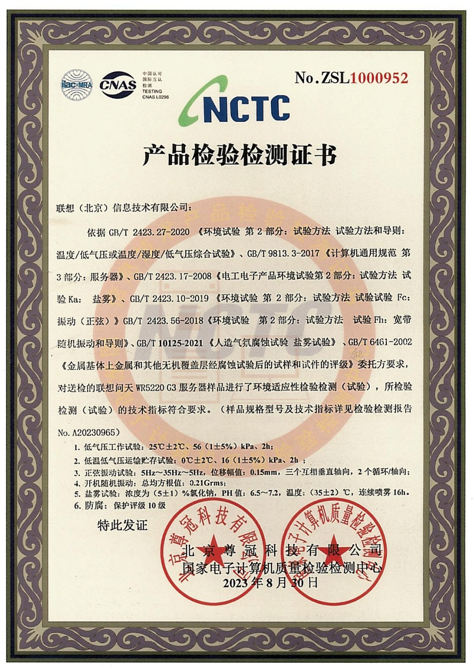 搭载英特尔第四代或者第五代至强可扩展处理器的联想问天 WR5220 G3,具有优异的性能、高可扩展性和高性价比的特点,适用于多种工作负载,如数据库、虚拟化和云计算、AI、高性能计算等场景。同时,它也是超融合基础架构和软件定义存储等解决方案的理想平台。联想问天 WR5220 G3服务器顺利通过了国家电子计算机质量检验检测中心(NCTC)和中国信息通信研究院两大权威机构检测,荣获十余项专业认证。