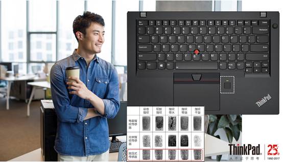 指纹开机so easy,手上沾了点咖啡,没关系,手指上无论水、油渍、灰尘,T470s依然可以精准无误地进行识别,还配备有指纹识别指示灯,识别状态可轻松了解。