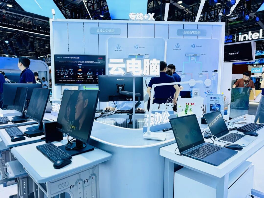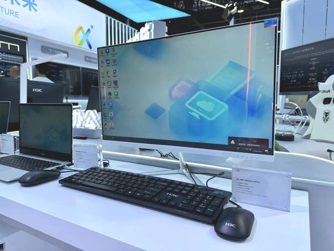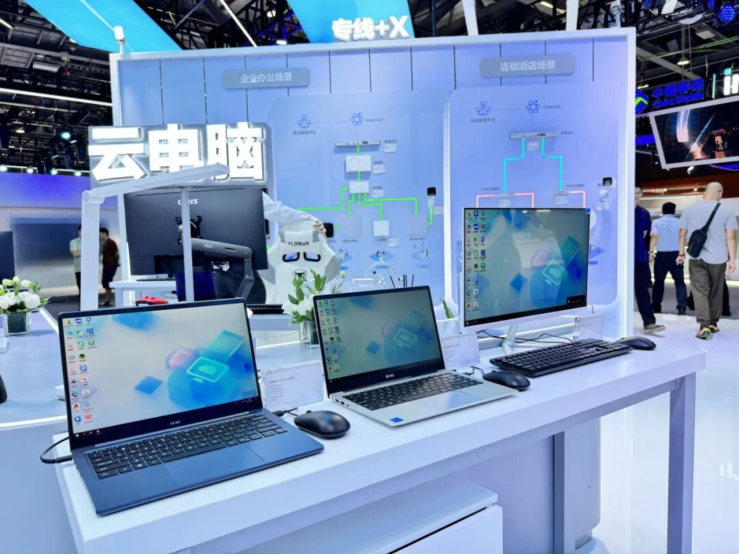 新华三商用终端亮相“数智生活 畅享未来”展区,展出多款云笔电、云终端、云一体机、商用笔记本,为观众带来办公、生活的全新体验。