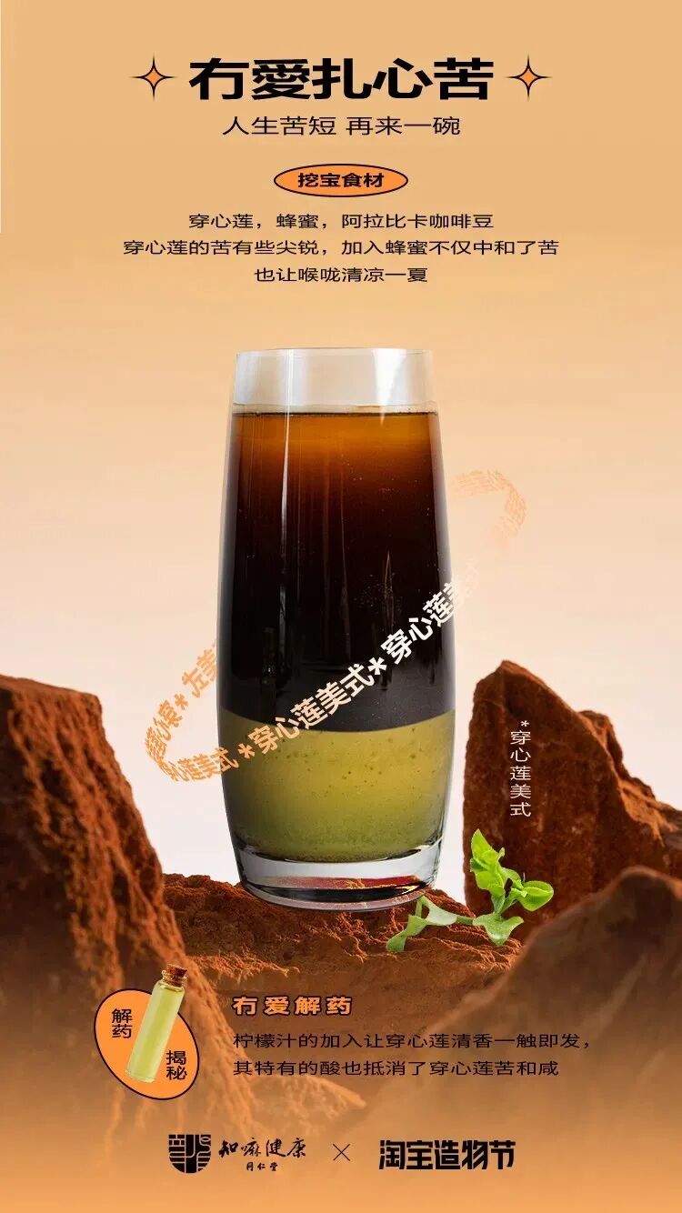 继草本咖啡改造了Z时代星人对养生的绝缘体质枸杞咖啡成为新潮,熬夜水变网红饮品这个淘宝造物节,知嘛健康又出狠招——“苦上加苦草本咖啡”横空出世!