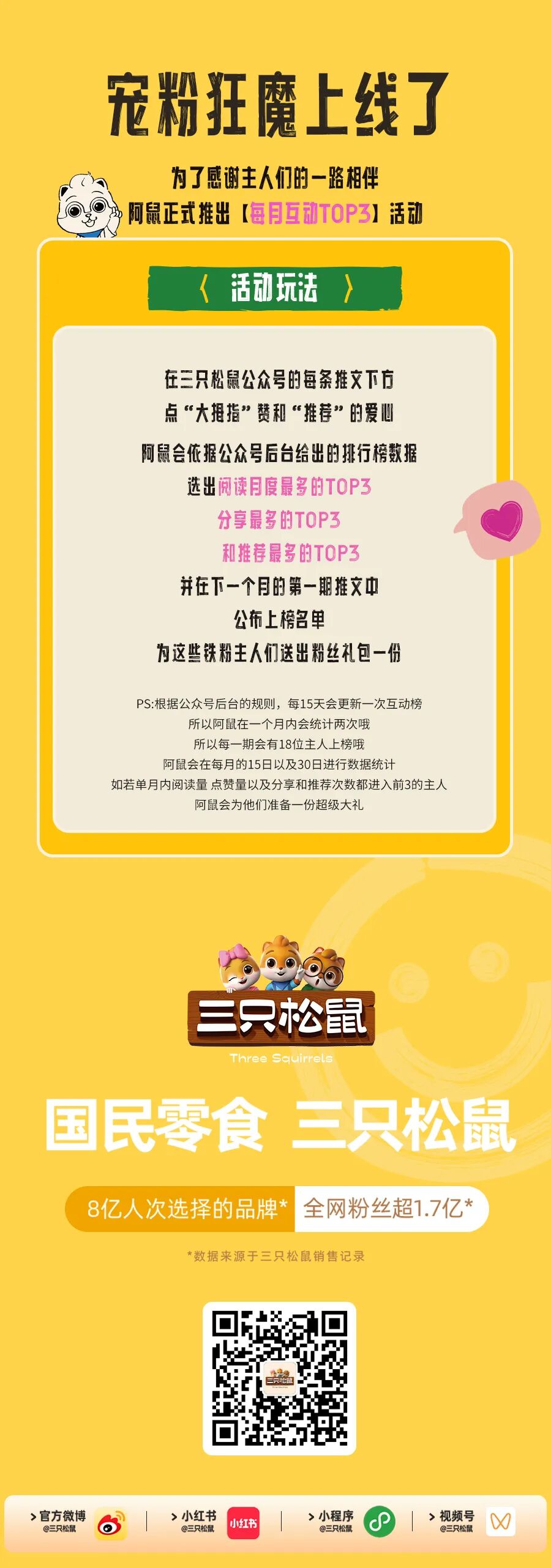 文章内容来源于公众号:三只松鼠,点此可查看原文,内容版权归相关企业所有,本网站仅供交流学习。若涉及版权问题或存在侵权情况,请及时与我们联系,我们将第一时间进行删除处理。