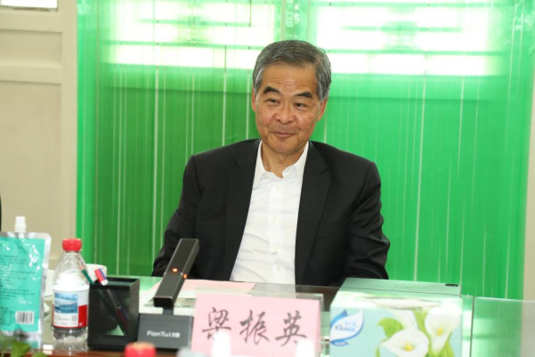 共享基金会总干事陈英凝,理事岳毅,总监邝嘉乐等陪同调研。同仁堂集团党委书记、董事长戴小锋热情接待梁振英一行。