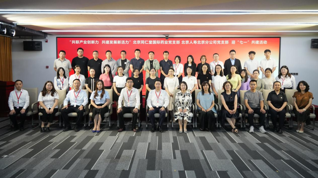 在建党104周年前夕,国际药业党支部与北京人寿北京分公司党支部以“共联产业创新力 共建发展新活力”为主题开展联学联建活动,同仁堂金融大街药店有限公司丰桥路分店、北京同仁堂(海南)控股有限公司共同参与。