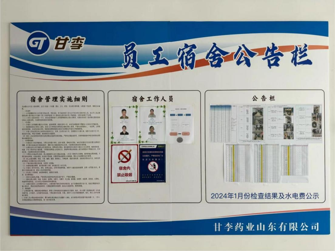 宿舍:宿舍也进行了年底大扫除,为即将到来的春节开新篇、换新颜!宿舍1-4楼所有开水器、洗衣机、冰箱进行了消毒,窗帘、各宿舍门、门框等公共区域卫生也进行了集中式清洁。1月29日,行政部生活中心联合EHS部开展了1月份辞旧迎新“年底大扫除”宿舍卫生评比的活动,检查结果已在宿舍公告栏公示,优秀宿舍及时到宿管间领取奖品哦~,