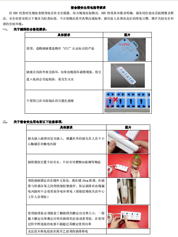 ⚡集体宿舍内禁止使用电热杯、热得快、电熨斗、电褥子、电火锅、电夹板、烘鞋器、煮蛋器、电烤炉、电饭煲、面包机、豆浆机、电磁炉等电器设备,以及未经公司批准的其他电器设备