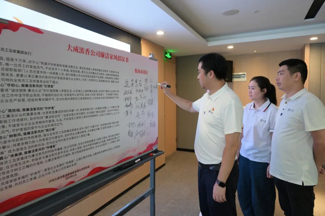 此外,支部发布了《大成浓香公司廉洁家风倡议书》,全体人员郑重签名承诺,一致表示要将廉洁家风内化于心、外化于行,真正实现以家风正作风、以作风促担当。