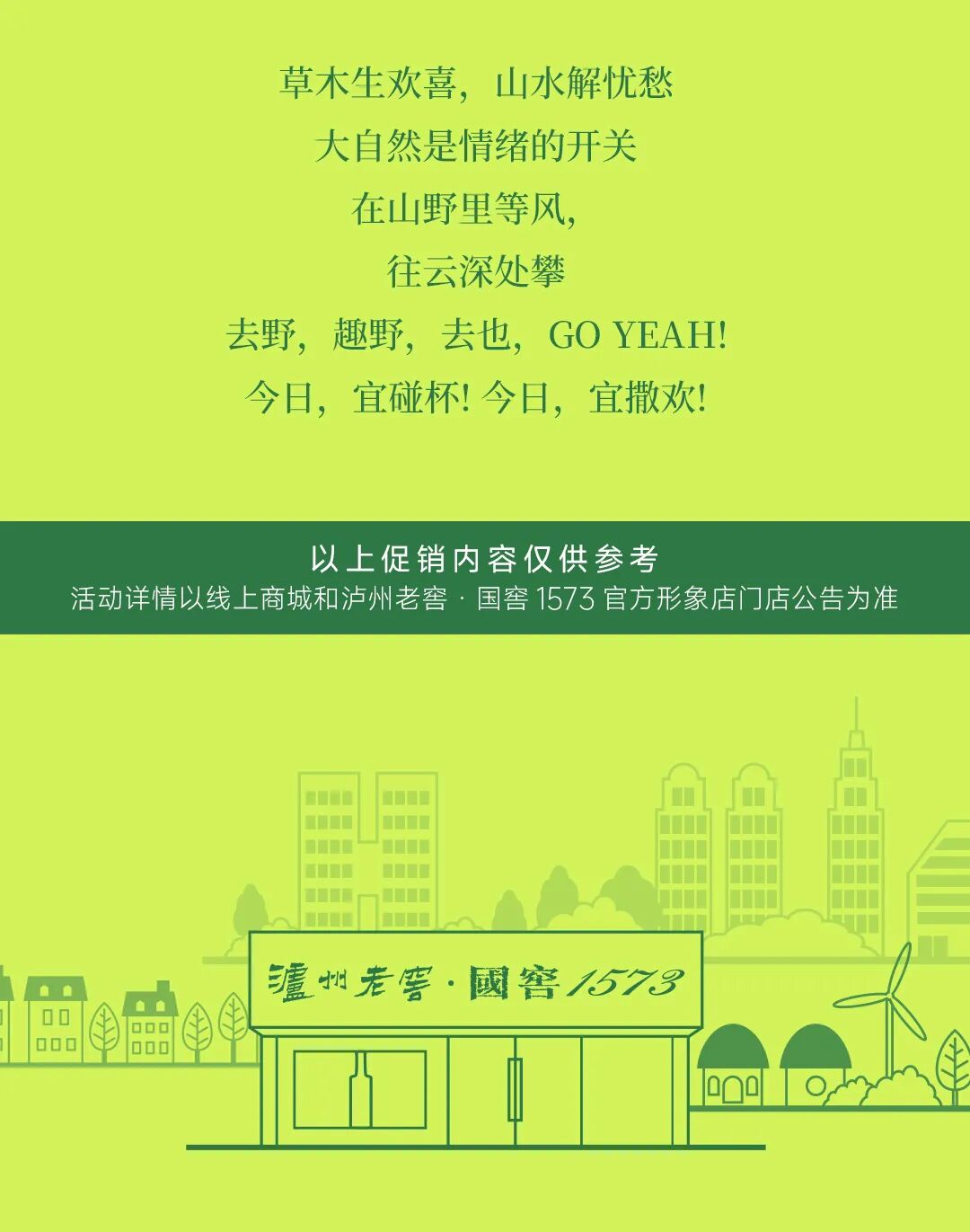 摘要:城市的郊外,阳光都自由自在\x0d\x0a春酿斟满,各自举杯\x0d\x0a顺着风的方向,邂逅岁月的芳香\x0d\x0a准备好了吗?\x0d\x0a和泸州老窖·国窖1573官方形象店 去撒欢!