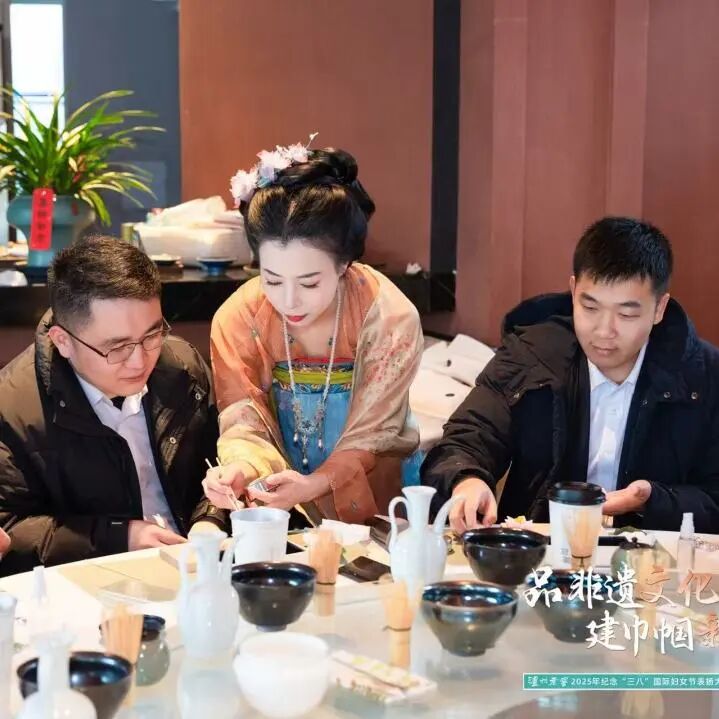 表扬会前,还组织了一场别具特色的茶酒文化体验,活动以“宋式茶道美学”和“国窖1573酒”为媒,将传统文化与现代生活完美融合,参加活动的职工通过亲手调膏、击拂、作画等环节,感受“茶”“酒”两种非遗文化碰撞的独特魅力,以及“慢工出细活”的匠人精神。