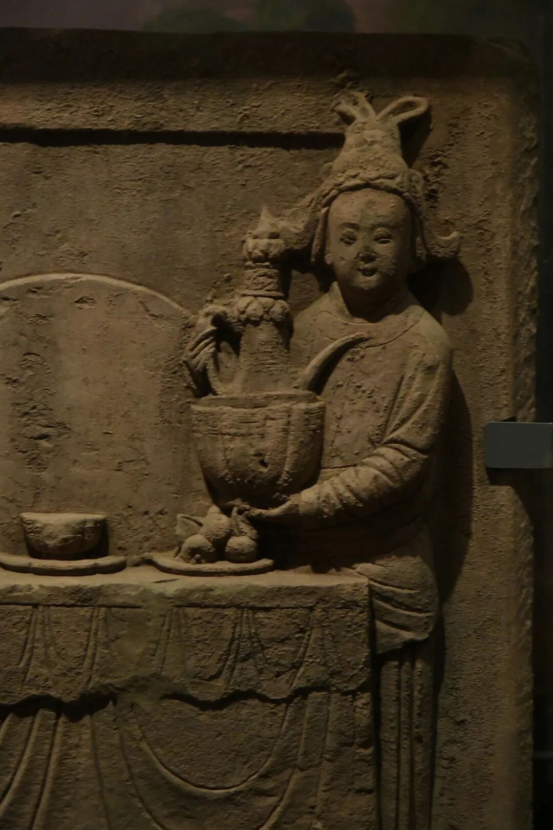 南宋「高浮雕持壶男女侍」石刻