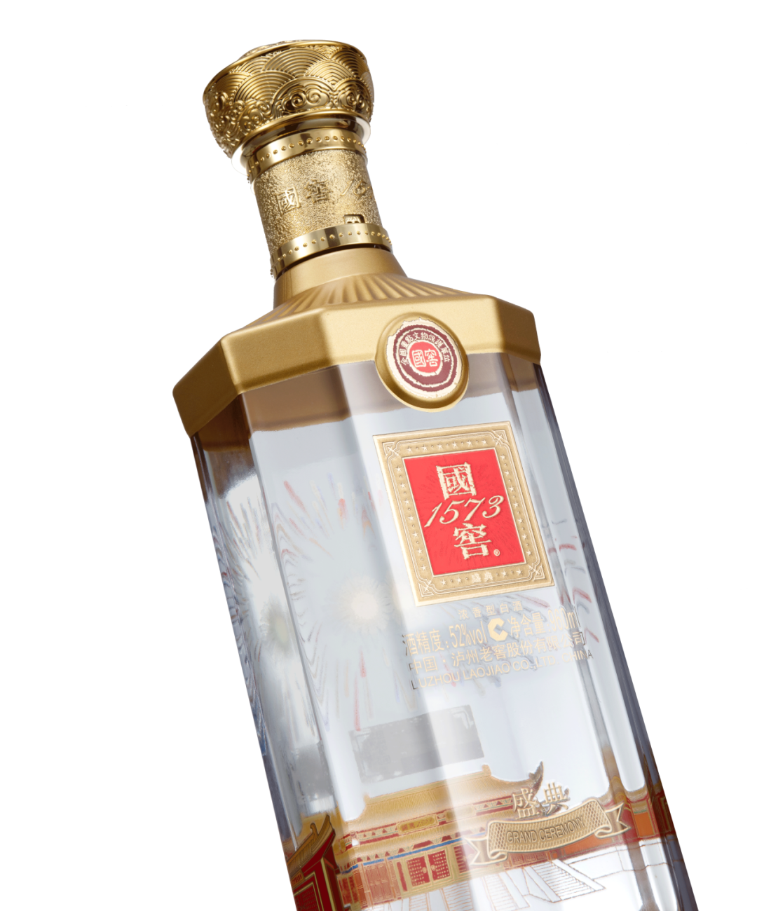 国窖1573·盛典以川南糯红高粱,龙泉井水与优质小麦为原料,经泸州老窖酒传统酿制技艺酿造而成,其酒质清澈透明,窖香优雅,绵甜爽净,柔和协调,绵润醇厚。
