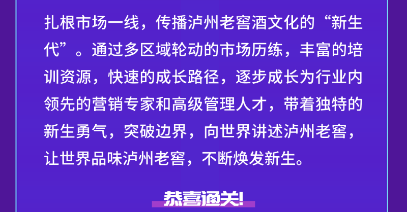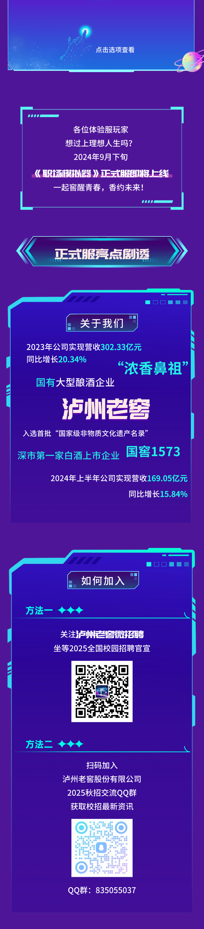 文章内容来源于公众号:泸州老窖微招聘,点此可查看原文,内容版权归相关企业所有,本网站仅供交流学习。若涉及版权问题或存在侵权情况,请及时与我们联系,我们将第一时间进行删除处理。