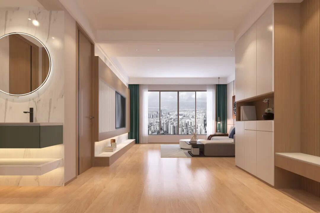 木地板安装时预留较大伸缩缝(高温膨胀更明显)避免后期起拱。