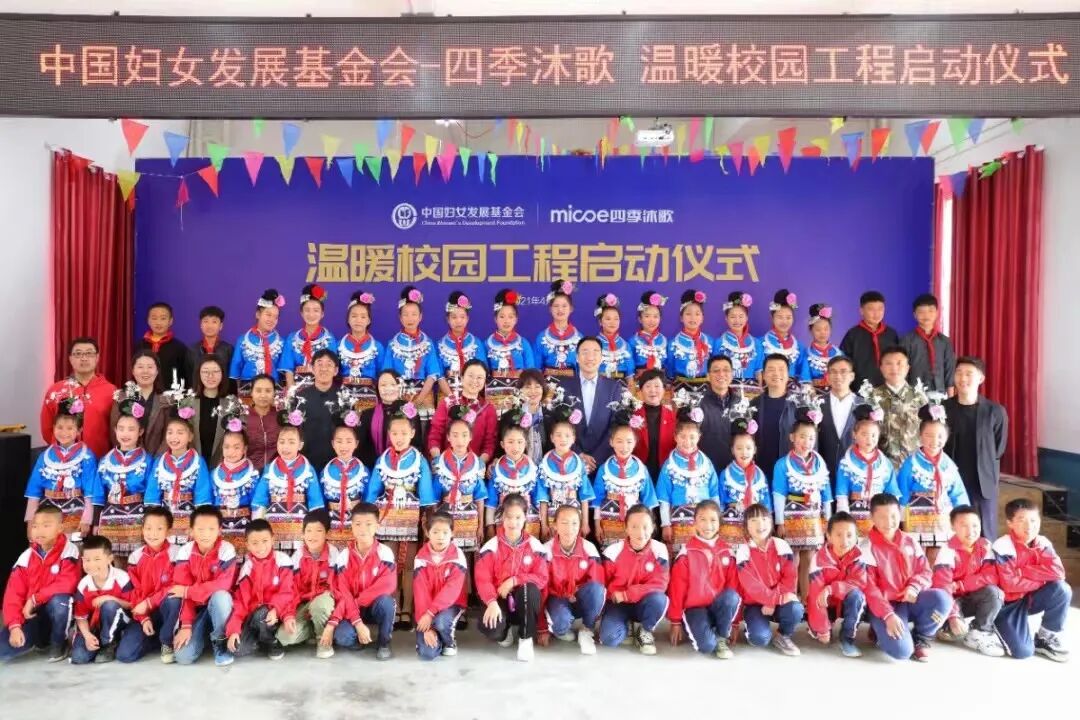 四季沐歌携手中国妇女发展基金会启动“温暖校园”工程,捐建贵州、江苏、四川、陕西、甘肃等地学校的净水、热水、采暖系统,一举解决了校园的日常净水与热水供应问题,为广大师生营造更节能、健康、舒适的教学及生活环境。