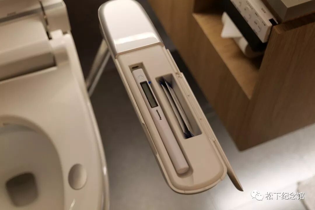 松下的智能马桶与智能浴室镜二者可以实现联动,通过马桶扶手上的指纹识别开启,取出储存在扶手中的尿检工具进行监测,浴室镜则实时显示检测数据形成专属档案,并根据用户的身体状态提出建议。