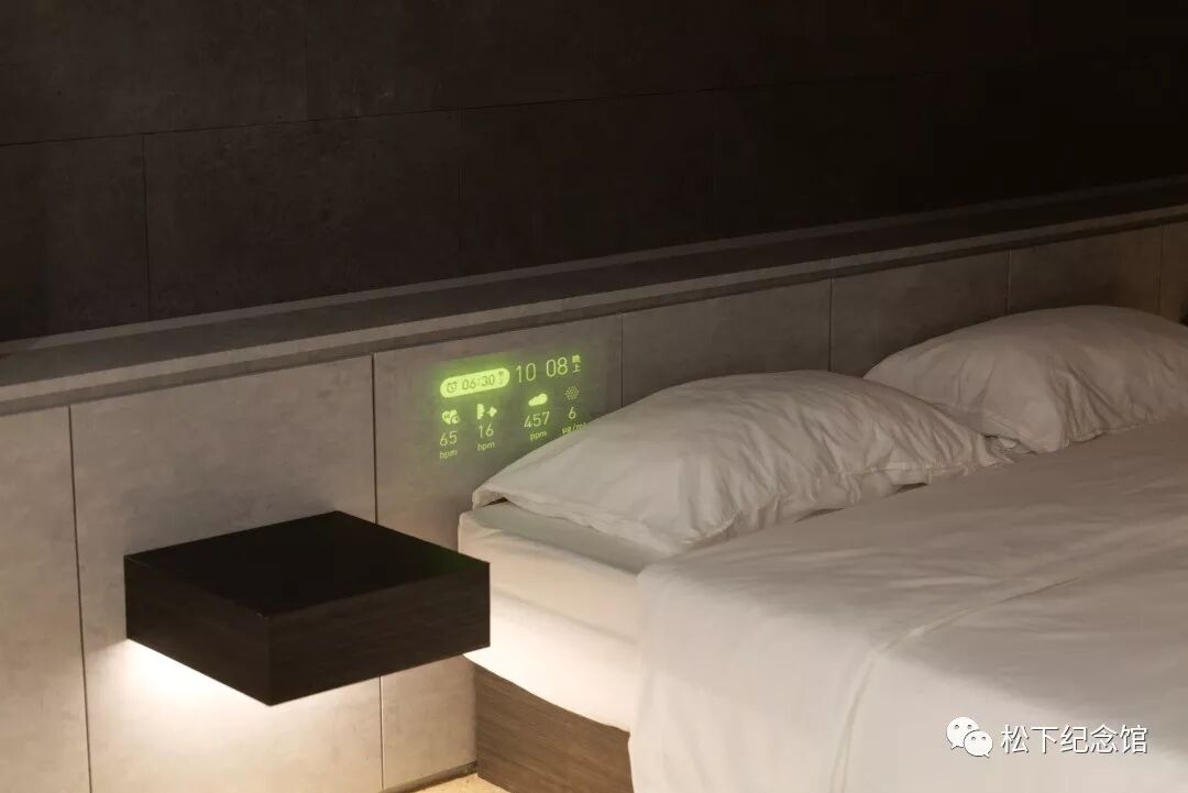 AI通过屋顶的电波感应器对心率,呼吸数以及睡相进行测定和分析,从而判断睡眠质量。通过床头的环境感应器对室内空气质量进行管理,不仅仅是温度、湿度,还会对二氧化碳的浓度PM2.5值进行测定,从而为卧室设定最舒适的睡眠环境。