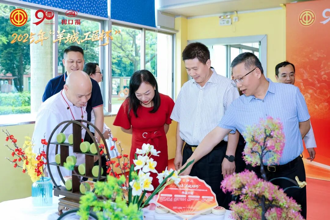 7月3日,2025年“羊城工匠杯”广州酒家集团利口福公司第七届月饼非遗技艺传承创新技能大赛顺利举行。广州市总工会一级调研员(市管干部)邢立明,集团党委副书记、副董事长、总经理赵利平,工会主席郭伟雄莅临现场观摩指导,市总工会相关部室成员,利口福公司、营管公司、培训学校相关领导和职工代表等参加活动。