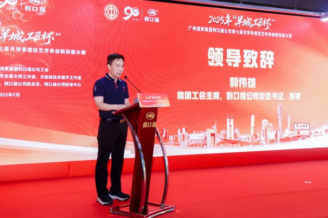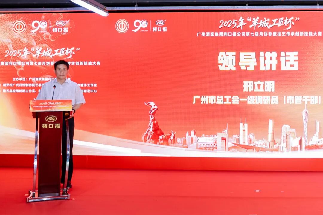 邢立明同志在讲话中指出,本次大赛不仅展现出广州酒家月饼制作技艺的高水准,更通过非遗传承收徒仪式、工匠事迹分享等环节,彰显广州酒家集团在非遗技艺“传帮带”的深厚底蕴与时代活力。他强调,集团各级工会要通过技能竞赛、文化推广等形式,培养更多“德艺双馨”的工匠人才,推动传统饮食文化创造性转化、创新性发展;要团结动员广大职工全力拼经济,保安全、办全运、提品质,在推动“12218”现代化产业体系建设、粤港澳大湾区建设、“百千万工程”、第十五届全国运动会中贡献积极力量。