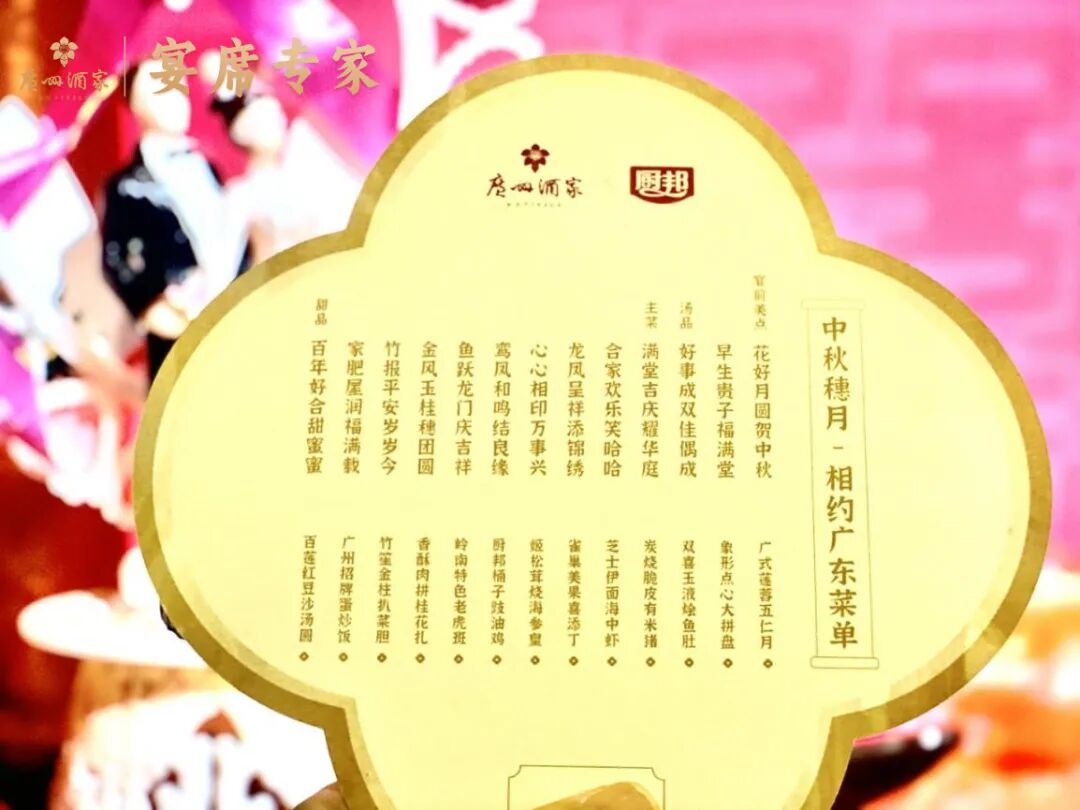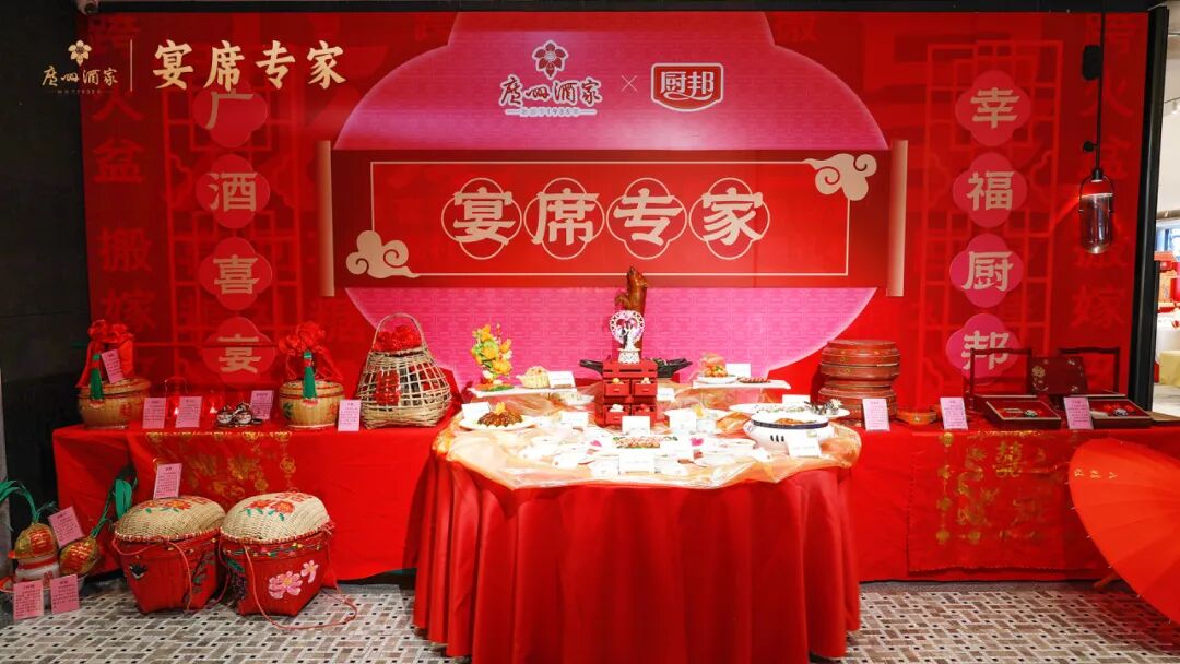 在活动当晚,广州酒家特邀广府传统婚礼习俗非遗代表性传承人八姑姐现场介绍广府传统婚礼习俗,讲解广府婚礼习俗的积极婚姻价值观。非遗艺术剪纸代表性传承人为现场的来客表演现场速剪画像。现场主题婚宴是精心准备的12道特色菜品,在上菜的同时由专业的讲菜师对菜式进行讲解。广州酒家粤菜大厨使用厨邦酱油现场烹饪多款菜式。好事成双佳偶成、阖家欢乐笑哈哈、龙凤呈祥添锦绣……道道菜品名称都包含着婚庆的美好祝福,也是“食在广州”饮食文化的具体体现。