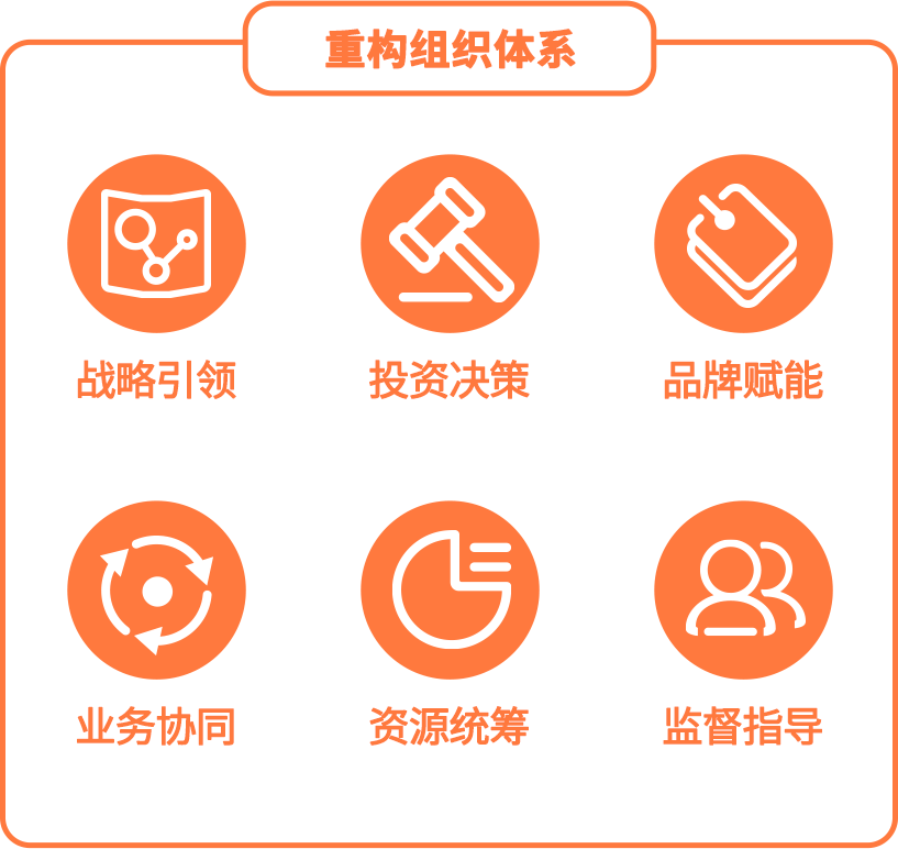 调整和优化组织管控体系,突出集团总部战略引领、投资决策、品牌赋能、业务协同、资源统筹和监督指导六大核心功能。