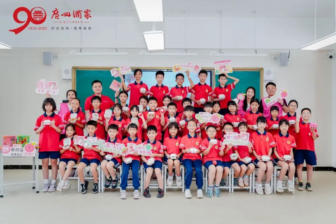 “荔枝酥小课堂”同样深受欢迎。党员志愿者不仅现场教学,示范制作岭南特色点心荔枝酥,还邀请集团派驻正果镇帮扶工作队员生动讲述荔枝酥背后的暖心故事,这款点心不仅是广州酒家集团对口帮扶正果镇的一项帮扶成果,同时也是集团充分挖掘岭南地域文化、发挥深加工优势推动荔枝产业高质量发展的生动实践,更是广州老字号以“地标产品+研发工艺+品牌赋能”模式推进环南昆山—罗浮山县镇村高质量发展引领区的鲜活案例。工作队员通过一步步指导,让学生们在亲身体验中感受非遗技艺的精妙,进而引导大家思考“一个小酥点如何助力乡村发展”,在孩子们心中悄然播下关心乡村、热爱家乡、拥抱创新的种子。