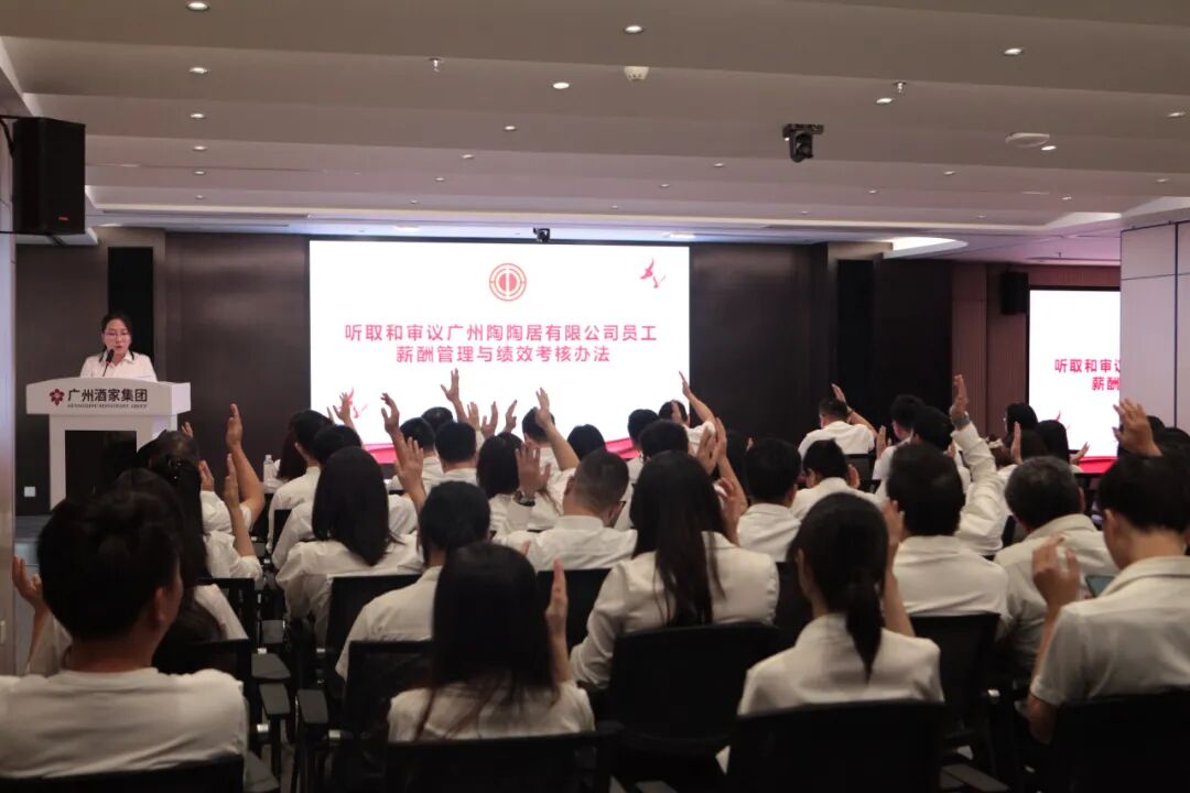 8月14日,广州陶陶居公司召开职工大会。会议听取了公司和工会2024年工作总结及2025年工作计划、工会决算情况,审议了员工薪酬与绩效考核管理办法和考勤休假管理办法。会议聚焦企业发展与职工权益,凝聚共识,为2025年高质量发展奠定坚实基础。