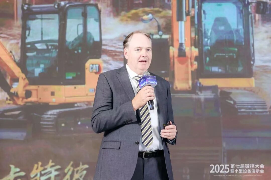 卡特彼勒小型基建产品事业部市场经理Cameron Balzat受邀发表主题演讲,深入介绍了卡特彼勒微挖产品的核心技术优势。