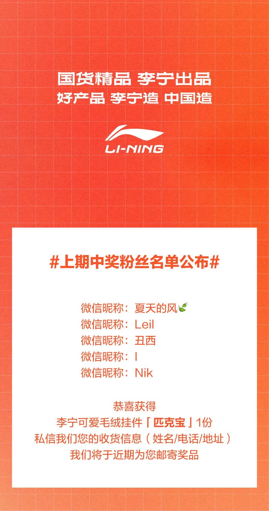 本文内容来源于公众号: 李宁羽毛球网球匹克球 ,请扫码查看原文。