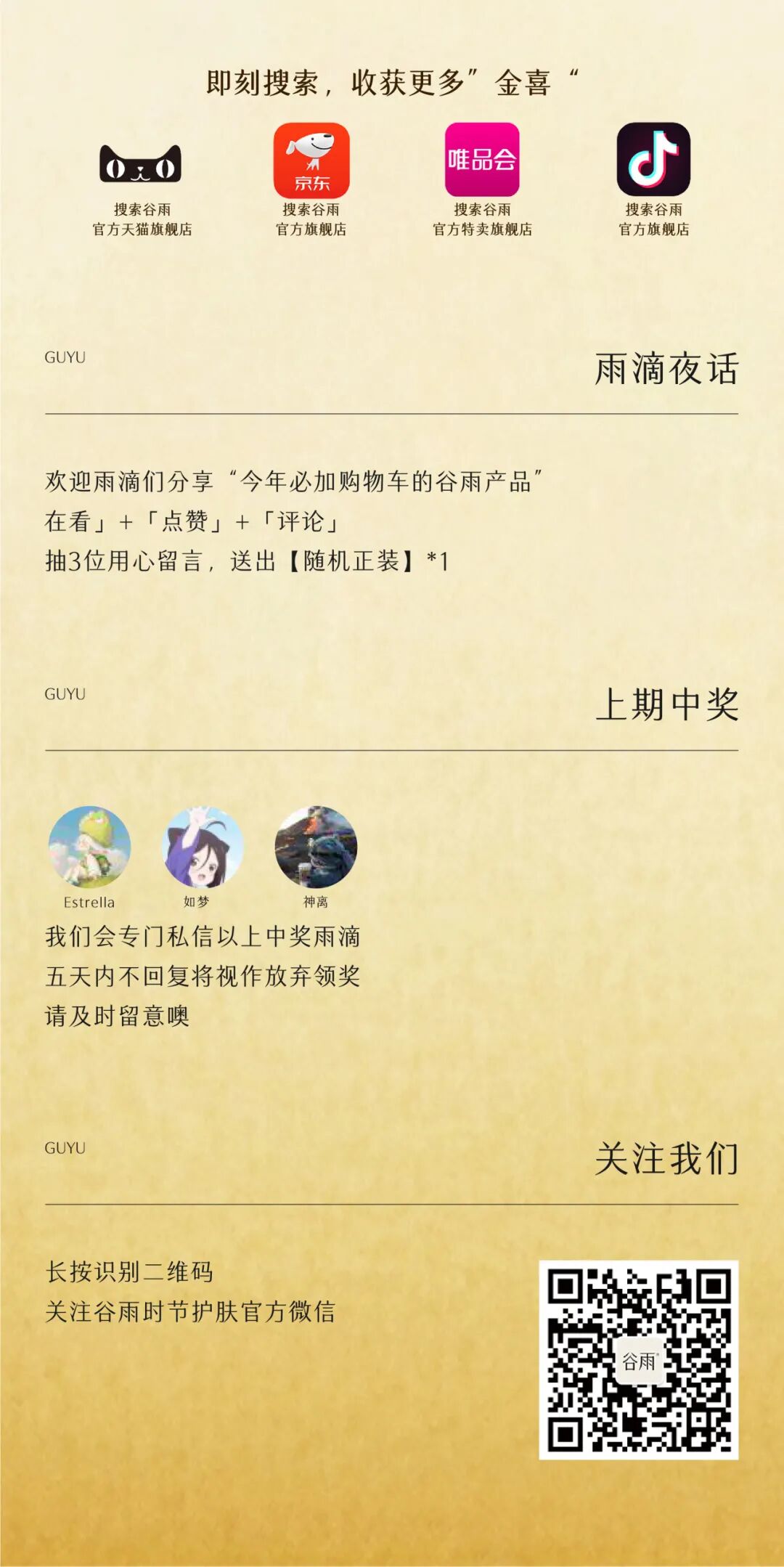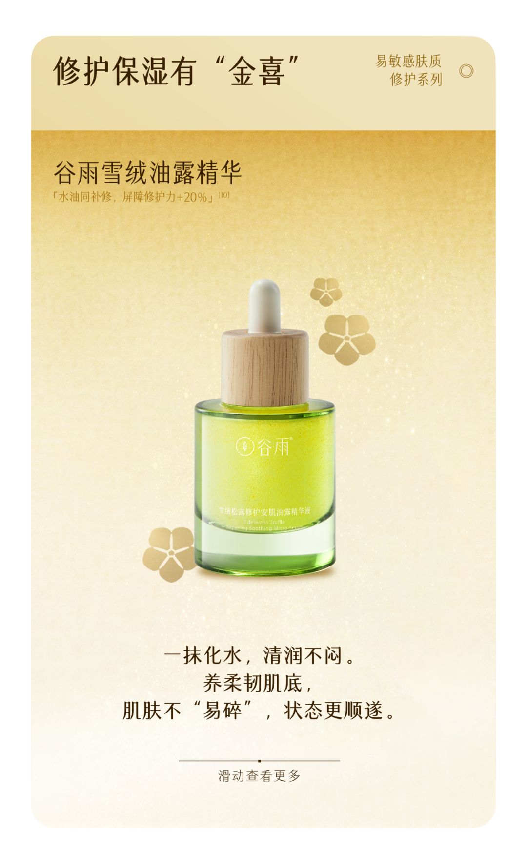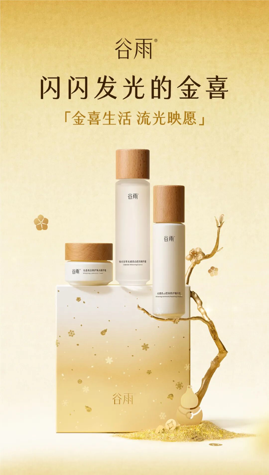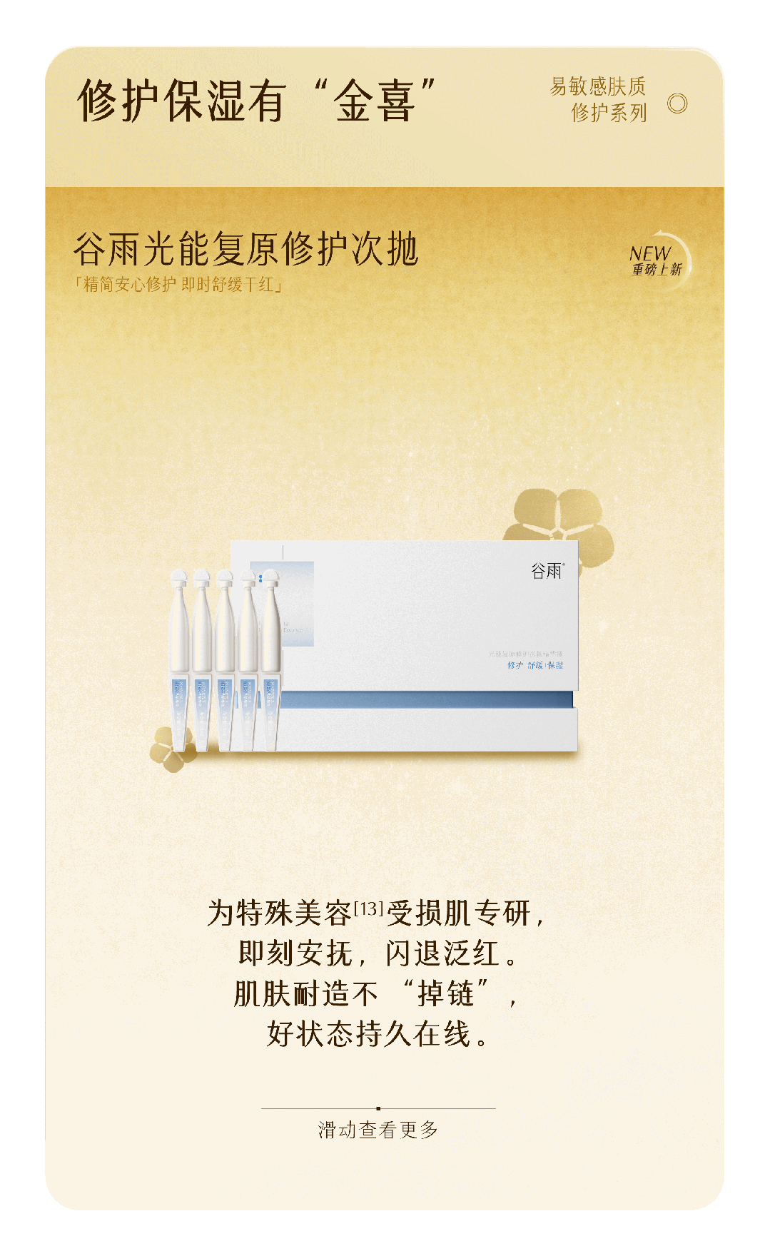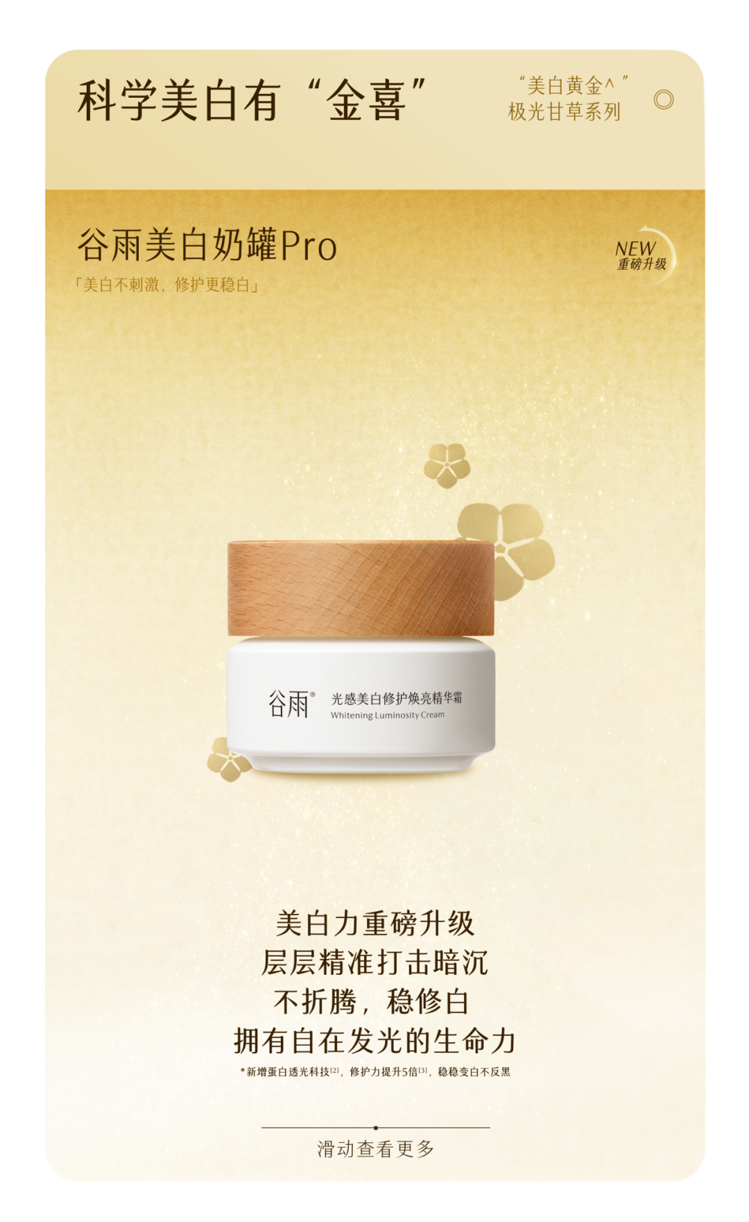 -谷雨,国内光甘草定美白开拓者和领导者。品牌起源于中国传统的“时节文化”,在深入研究中国人肤质特点的基础上,以创新科技力量,激发珍稀植萃能量,打造中国女性独有的新生白。
