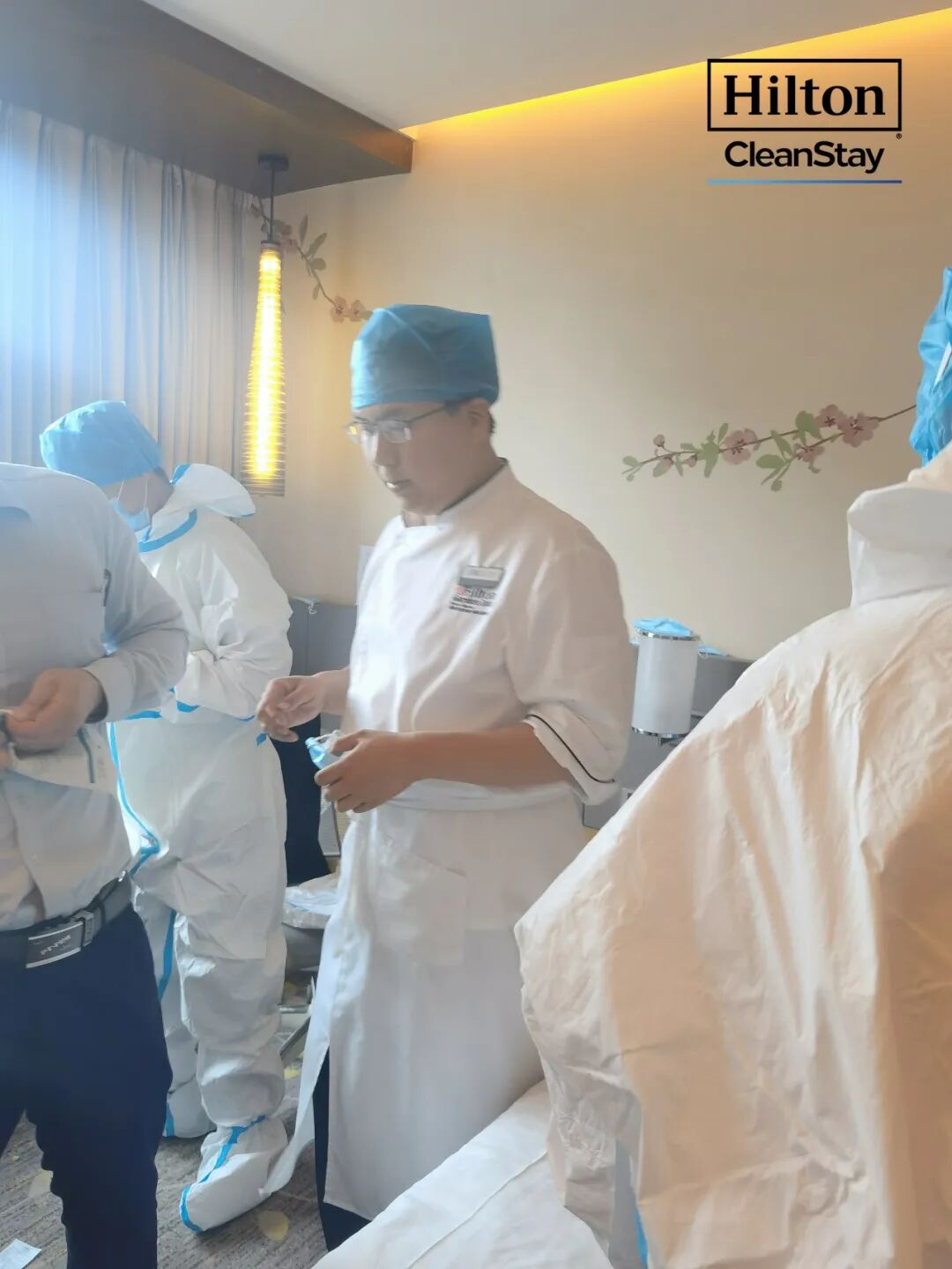 为了进一步加强卫生监管,每天对公共区域定时消毒;餐厅、客房所有的物品进行统一清洗、更换,对于宾客经常性接触的用品、卫生洁具,进行全面擦拭消毒;每个房间消毒结束,开窗通风;为客人提供放心、安心、舒心的健康环境。