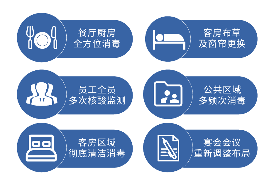 每一个工作人员尽忠职守,全员做好核酸检测,以实际行动认真落实每一项疫情防控工作,丝毫不敢松懈。始终将宾客健康安全作为第一要务。