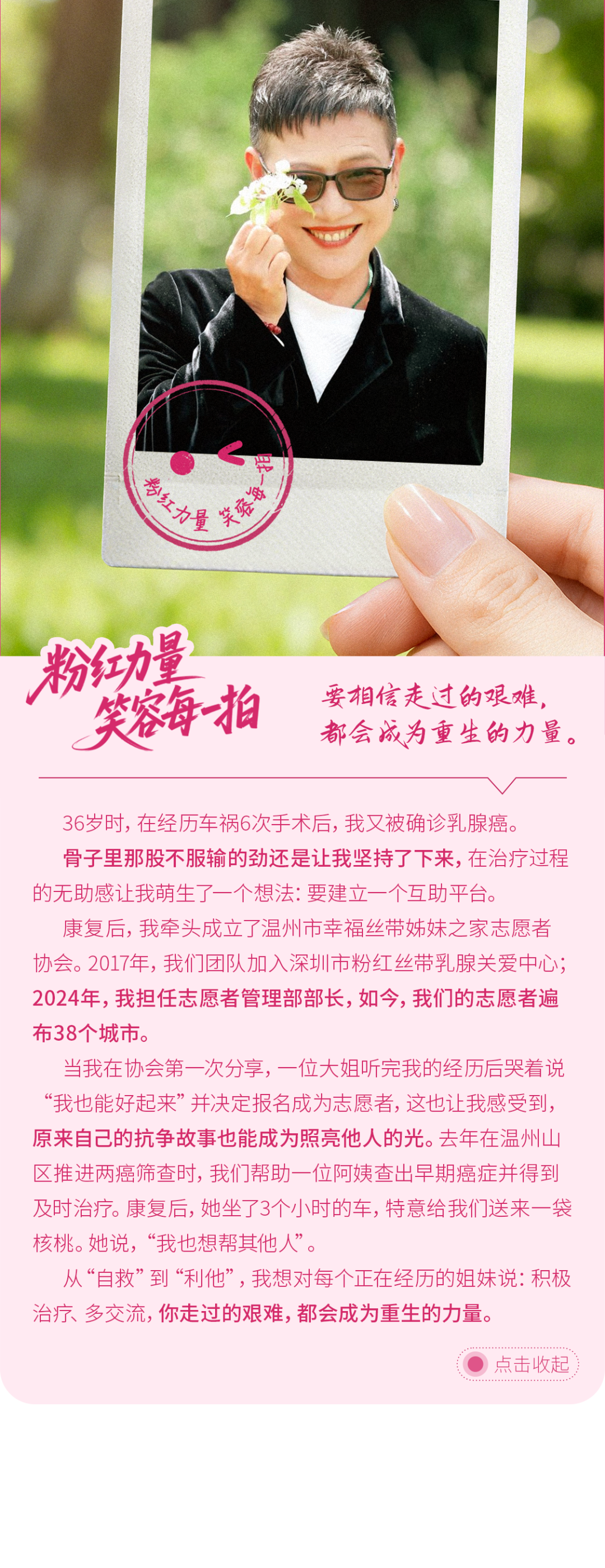 摘要:富士胶片联合粉红丝带乳腺关爱中心邀你一起传递力量,绽放笑容!