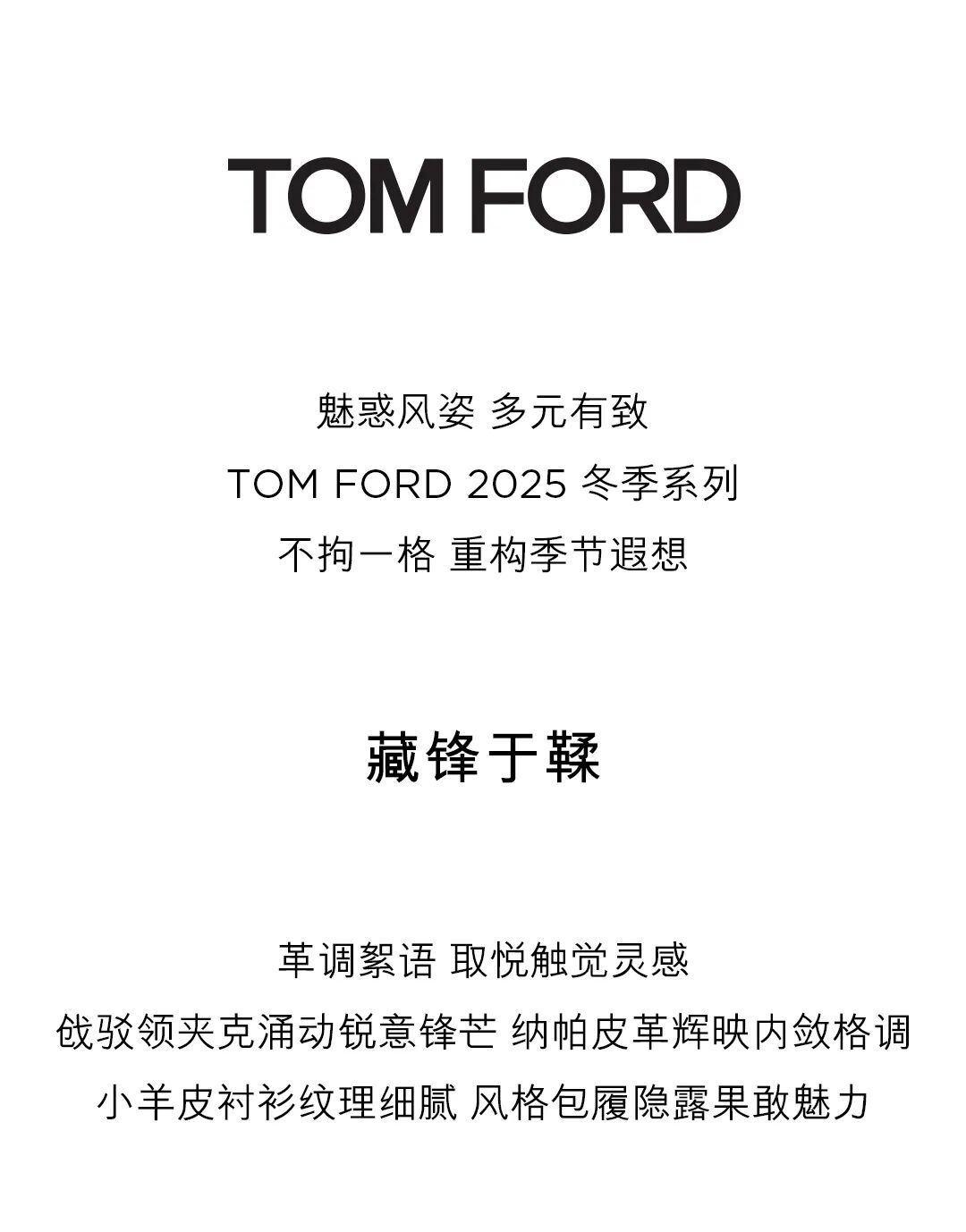 文章内容来源于公众号:TOMFORD汤姆福特,点此可查看原文,内容版权归相关企业所有,本网站仅供交流学习。若涉及版权问题或存在侵权情况,请及时与我们联系,我们将第一时间进行删除处理。