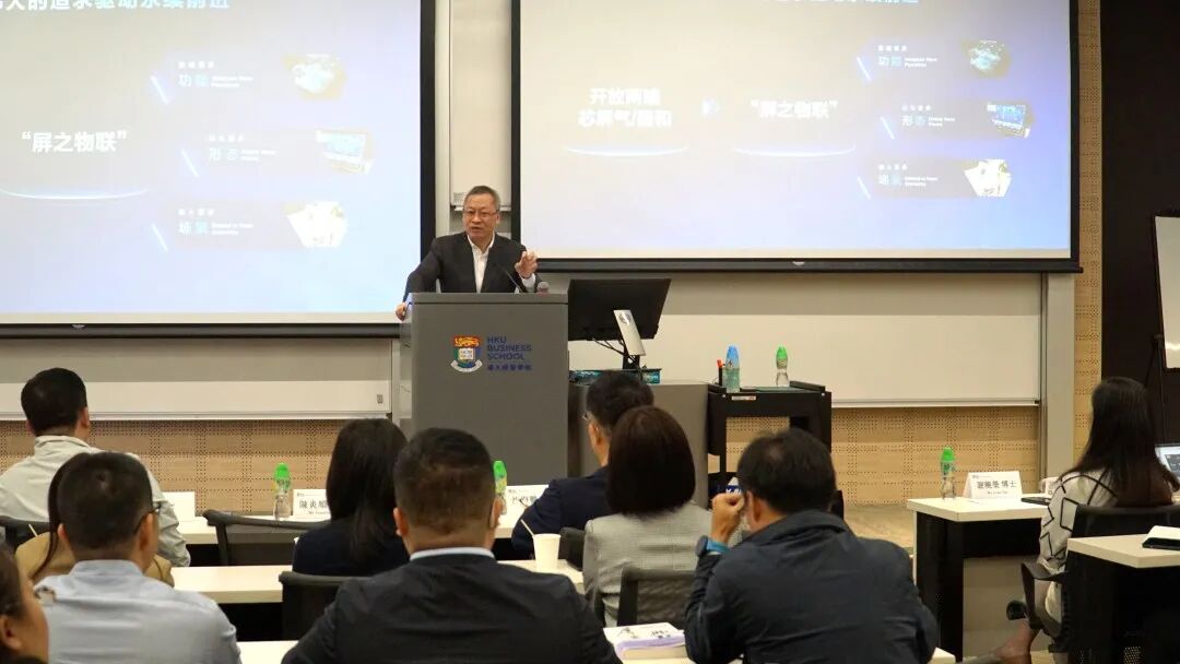 在香港大学EMBA课堂上,面对来自全国的企业家与管理精英,陈炎顺分享了京东方从破局中国“少屏”困境到全球显示领军者,再到布局物联网创新的战略升维逻辑,并深入系统阐释了“屏之物联”与“第N曲线”的内涵和战略协同关系。