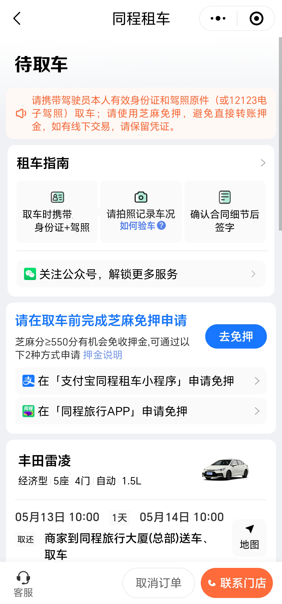 门店小哥会致电您确认取车信息~
