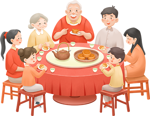 中秋当晚,一家人会早早地准备好丰盛的晚餐,美味的月饼、各种水果和家常菜。