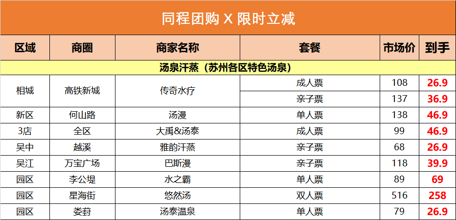 🔥¥26.9起苏州各区汤泉汗蒸🔥