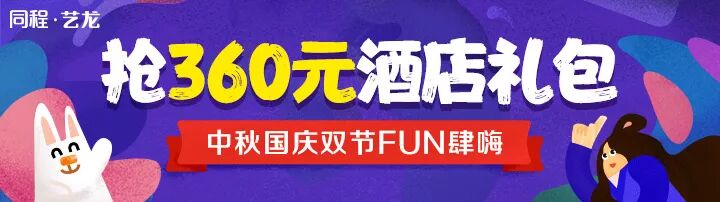 2、同程艺龙中秋送大礼包,360元国内酒店红包,快去抢哦!!!
